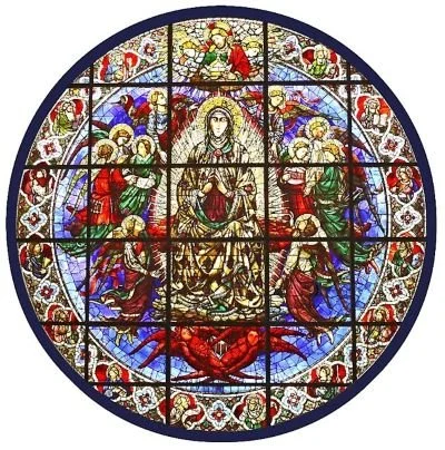 Niccoló di Pietro di Giovanni il tedesco was one of the first important glaziers to work in Florence. He was the son of the sculptor Pietro di Giovanni who, probably from Brabant, had come to Florence in 1386 and had worked on the sculptures of the façade of the cathedral at the end of the 14th century. Niccoló had made 3 beautiful stained-glass windows for the same church (between 1410 and 1415) after cartons by Lorenzo Ghiberti. On the inside of the façade, a Assumption of the Virgin Mary shines in the rosette (see fig.1). In the 1st bay of the left aisle a Santo Stefano with Angels appears and in the 1st bay of the right aisle a San Lorenzo with Angels.